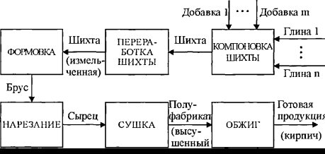 Le schéma structurel de la production de briques céramiques peut être représenté comme une chaîne de processus technologiques interconnectés (étapes). [1] Fig. une.