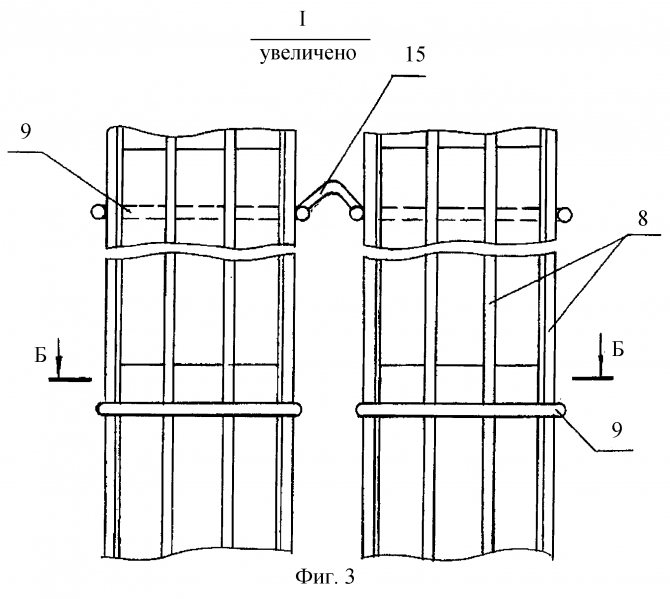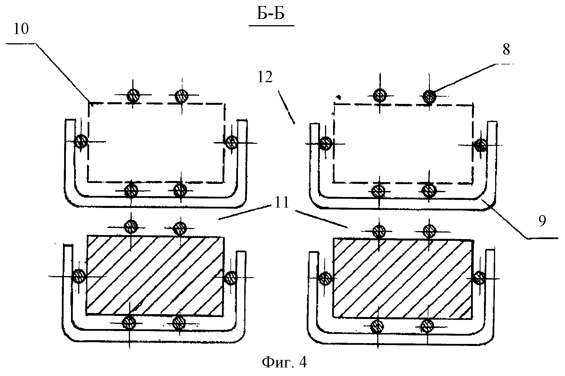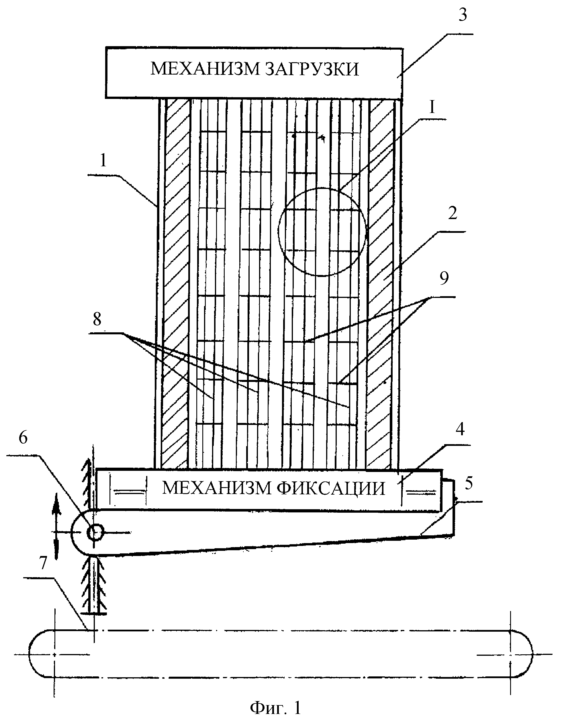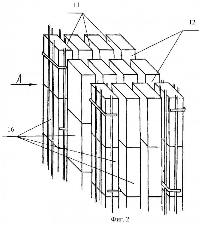 1. Procédé de cuisson de briques dans un four à cuve, comprenant le chargement de produits à partir du haut du corps du four avec installation sur une charge, réalisé sous la forme d'un ensemble de piliers de produit uniformément répartis dans le volume du canal du four, mouvement synchrone de la charge le long du canal de cuisson, fournissant le fluide caloporteur aux interstices entre les piliers et déchargeant des fours inférieurs des produits finis, caractérisé en ce que chaque pilier de la cage est formé par installation séquentielle d'un produit sur un autre pour former deux faces opposées du pilier par les surfaces de vérin des produits, les piliers des produits sont placés dans le canal de tir avec la formation d'espaces entre les piliers des piliers suffisants pour le libre mouvement du liquide de refroidissement, et l'alimentation du liquide de refroidissement est effectuée dans les espaces perpendiculaires aux bords formés par les surfaces de piston des produits. Procédé selon la revendication 1, caractérisé en ce que les articles de la colonne de cage sont poussés sur la crosse. Procédé selon la revendication 1, caractérisé en ce que les produits de la colonne cage sont placés avec une cuillère sur une cuillère. Procédé selon la revendication 2 ou 3, caractérisé en ce que les espaces entre les bords des piliers adjacents formés par les surfaces de vérin des produits sont de 10 à 40 mm, les espaces entre les bords perpendiculaires à ceux-ci sont de 20 à 80 mm. . La méthode selon l'un des paragraphes. 6. Four à cuve pour la cuisson des briques, contenant un canal de cuisson, un dispositif de chargement installé au-dessus de l'ouverture supérieure du four, un dispositif de déchargement situé sous l'ouverture inférieure du four, comprenant un mécanisme de fixation de charge et un mécanisme d'abaissement et de déchargement des produits, sources d'énergie thermique pour la cuisson situées dans le canal de cuisson et dispositifs d'évacuation des gaz caractérisés en ce que le four est équipé de guides verticaux montés dans le canal de cuisson, disposés en groupes sous la forme d'un ensemble de canaux de guidage espacés les uns des autres, librement embrassant des piliers installés successivement les uns sur les autres avec la formation de surfaces de vérin de deux faces opposées du pilier de produits, tandis qu'à proximité des bords mentionnés des piliers, les guides verticaux des canaux de guidage adjacents sont espacés de les uns des autres avec la formation d'espaces entre les piliers des produits suffisants pour la libre circulation du flux de liquide de refroidissement, et les sources de chaleur les énergies sont placées dans les espaces perpendiculaires à ce qui précède. Four selon la revendication 6, caractérisé en ce que les espaces entre les côtés des canaux de guidage correspondant aux bords des piliers de cage formés par les surfaces de piston des produits sont de 10 à 40 mm, et les espaces perpendiculaires à ceux-ci sont de 20 à 80 mm. Four selon la revendication 6 ou 7, caractérisé en ce que les guides verticaux sont réalisés sous la forme de tiges verticales d'un alliage résistant à la chaleur et sont combinés en groupes au moyen de supports horizontaux recouvrant les tiges d'un côté ou de l'autre côté de le canal, alternant le long de la hauteur du canal des côtés mâles. Le four selon l'un des paragraphes.6-8, caractérisé en ce que les sources d'énergie thermique pour la cuisson sont réalisées sous la forme de brûleurs à faisceau de type diffusion installés avec l'alignement de l'emplacement des trous pour la sortie du liquide de refroidissement et des interstices entre les bords de la cage piliers formés par les surfaces de vérin des produits. Four selon la revendication 9, caractérisé en ce que le four est équipé de vannes d'organisation des flux de fluide caloporteur, situées horizontalement dans les interstices entre les canaux de guidage au-dessus des sources d'énergie thermique. Le four selon l'un des paragraphes. 6-10, caractérisé en ce que les dispositifs d'évacuation des gaz sont réalisés sous la forme de tuyaux situés dans les interstices entre les canaux de guidage similaires aux sources d'énergie thermique. Le four selon l'un des paragraphes. 6-11, caractérisé en ce que le mécanisme de fixation de charge est réalisé sous la forme d'un ensemble d'éléments de serrage individuels pour chaque colonne de produit. Le four selon l'un des paragraphes. 6-12, caractérisé en ce que le mécanisme de descente et de déchargement des produits est réalisé sous la forme d'une table rotative par rapport à l'axe horizontal, installée avec la possibilité de faire un mouvement de va-et-vient verticalement. Four selon la revendication 13, caractérisé en ce que la table tournante est pourvue de fentes situées du côté opposé à l'axe de rotation de la table, et réalisées avec la possibilité de passer à travers elles des convoyeurs à chaîne.