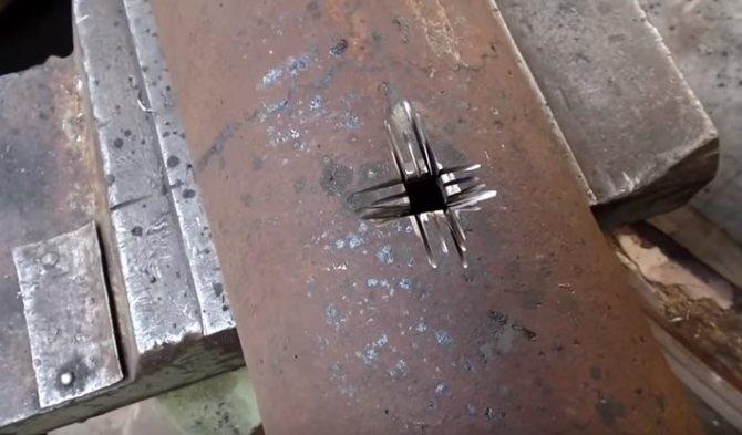 - En outre, sur la base de ces mesures, un cadre est découpé (le plus souvent une tôle d'acier est prise), qui sera retiré. Un virage est fait à son extrémité pour un contrôle plus pratique. Toutes les extrémités doivent être soigneusement nettoyées afin qu'il n'y ait pas d'irrégularités inutiles.