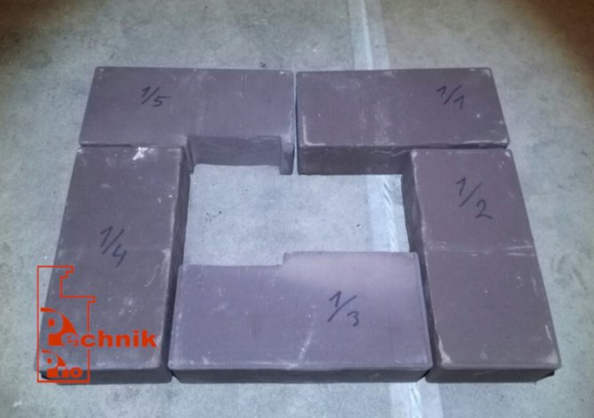 La première photo montre la première rangée pour l'installation du cadre, les sélections nécessaires ont déjà été faites. Ils peuvent être réalisés avec un moulin ou sur une machine. Pour plus de commodité, chaque brique est numérotée selon le principe «rangée / nombre de briques dans une rangée», dans le sens des aiguilles d'une montre. Toutes les photos lorsque vous cliquez sur ouvrir et agrandir dans une nouvelle fenêtre: