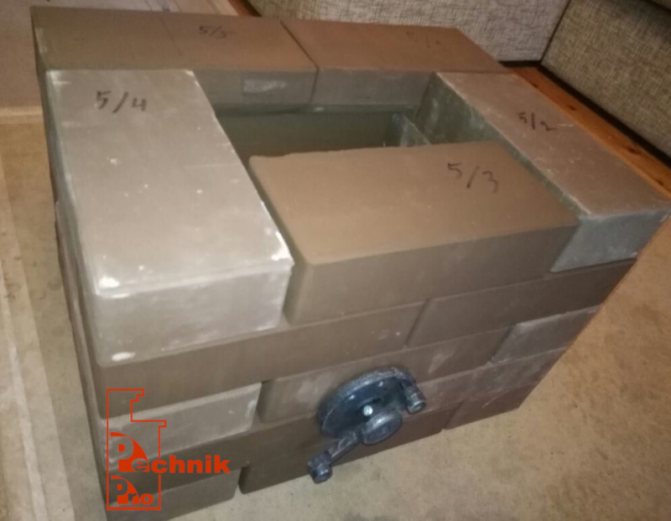 Et pour être complet, la cinquième rangée à la fois, puisque la quatrième n'est pas intéressante, elle reflète la troisième, et la cinquième montre la porte en position «ouverte» et des échantillons en briques qui permettent à la porte de tourner librement le long de l'axe du manipuler. C'est probablement tout, bonne chance dans la mise en œuvre des idées et des casseroles!