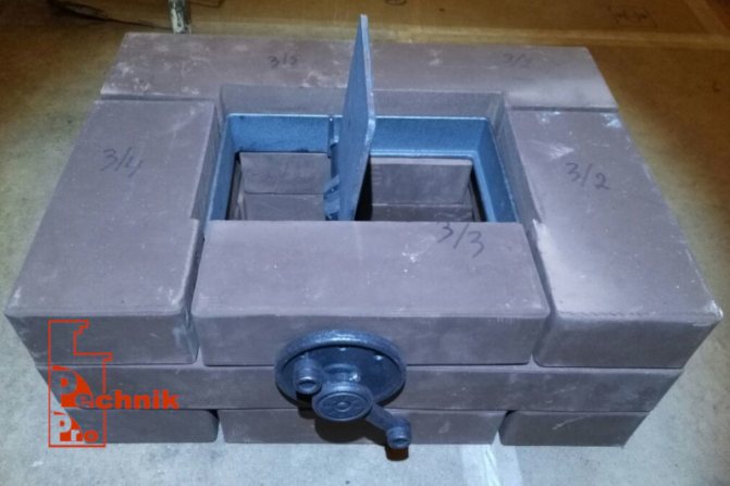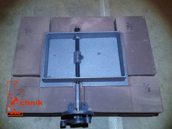 Une vanne d'arrêt de poêle en fonte conventionnelle est verrouillée par un obturateur de protection, qui est monté dans le corps de cadre à travers un espace. Il peut également être installé après l'installation du cadre. Le volet à la vue est fermé manuellement, par conséquent, une porte spéciale doit être installée au-dessus du corps de cette conception, avec laquelle il sera possible de contrôler le couvercle.