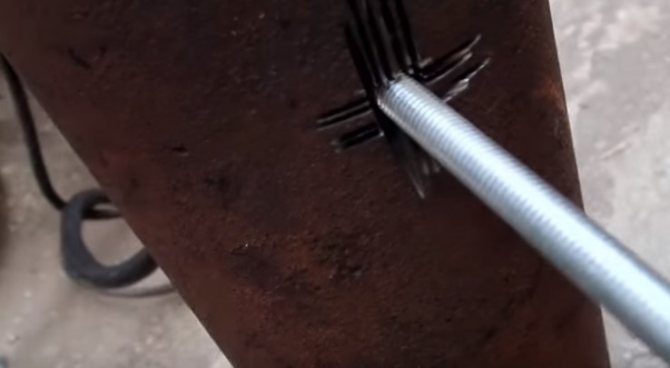 - Ensuite, vous devez souder la structure de sorte que les trous du tuyau coïncident. Laissez 4-6 mm d'espace libre entre les feuilles.