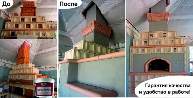 - Quelque temps avant de commencer les travaux, le poêle ou la cheminée doit être chauffé, mais ne soyez pas trop zélé, la surface doit être tiède, pas chaude. Ceci est fait pour que le mortier adhère mieux et sèche plus rapidement après la finition.