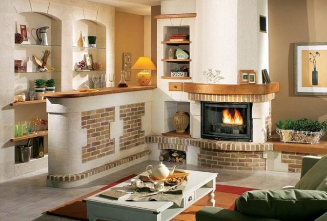 Comme mentionné précédemment, les cheminées et les poêles, qu'il s'agisse de bâtiments résidentiels ou d'extérieur, peuvent être carrelés avec des carreaux ou des pierres naturelles, ainsi que diverses moulures en stuc. Comme vous pouvez le comprendre, non seulement les mélanges adhésifs pour parement doivent avoir des propriétés de résistance à la chaleur, mais le carreau lui-même doit avoir une résistance au feu et résister à des températures élevées. À l'aide de carreaux décoratifs, vous pouvez créer de véritables œuvres d'art à partir de structures chauffantes qui deviendront la meilleure décoration pour une pièce.