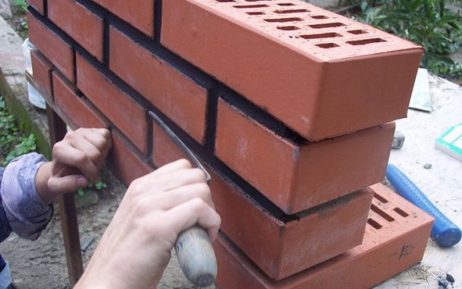 Afin de réaliser un coulis convexe, un outil en forme d'arc est appliqué sur l'espace entre les briques avec un arc vers l'extérieur et l'espace est rempli d'une solution. Lorsque l'une des coutures est remplie, l'outil est déplacé plus loin. Ainsi, tous les joints horizontaux sont remplis. Lorsque le mélange est sec, vous pouvez faire un coulis convexe de joints verticaux. Tout le mélange en excès est essuyé de la surface de la brique avec un chiffon humide.