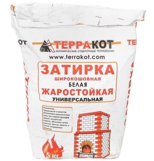 - "Terre cuite". Coulis blanc résistant à la chaleur pour fours. C'est le remède le plus approprié et le plus courant. Le colis contient 20 kg. Résistant à l'humidité, ne craque pas. Résiste à des températures jusqu'à 400 degrés. Vous pouvez changer la couleur en utilisant des schémas de couleurs. Prix - 900 roubles.