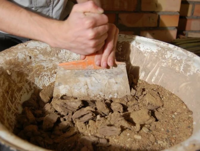 Tout d'abord, du sable, de l'argile et du ciment sont mélangés, puis de l'eau est ajoutée. Il doit être ajouté progressivement, en vérifiant la viscosité résultante. Ensuite, du sel est ajouté. Mélangez le tout à nouveau soigneusement.