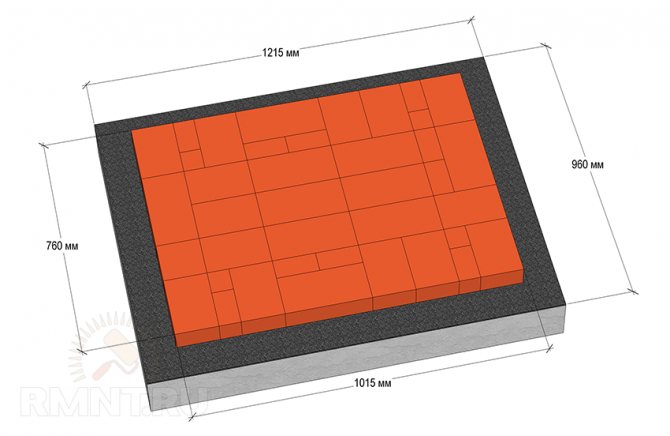 En taille, une telle fondation dépasse la base du poêle. Par exemple, si la base est de 1000x1000, alors l'oreiller sera de 1100x1100 mm.