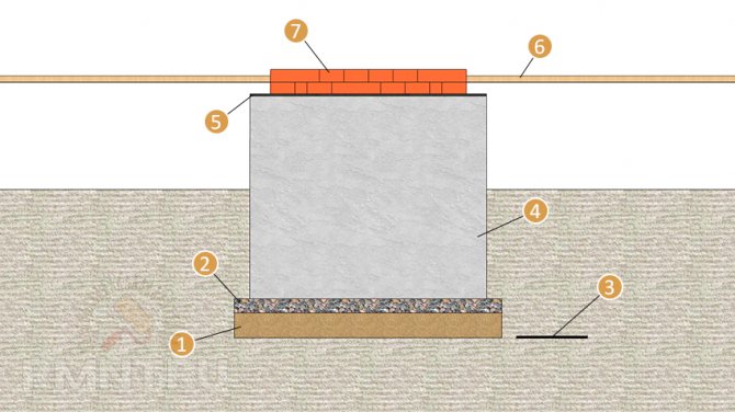 Une fois la fondation prête, vous pouvez commencer à poser la fondation. La commande est effectuée strictement selon le schéma et comprend les étapes suivantes: