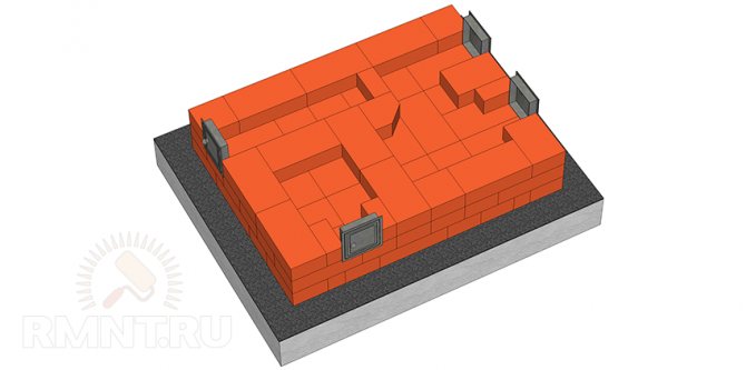 La fondation doit être séchée. La période de séchage dure au moins un mois. Ensuite, plusieurs feuilles de matériau de toiture sont posées sur la base pour une imperméabilisation fiable. La construction du poêle commence sur eux. La base doit être de niveau, sans pentes.
