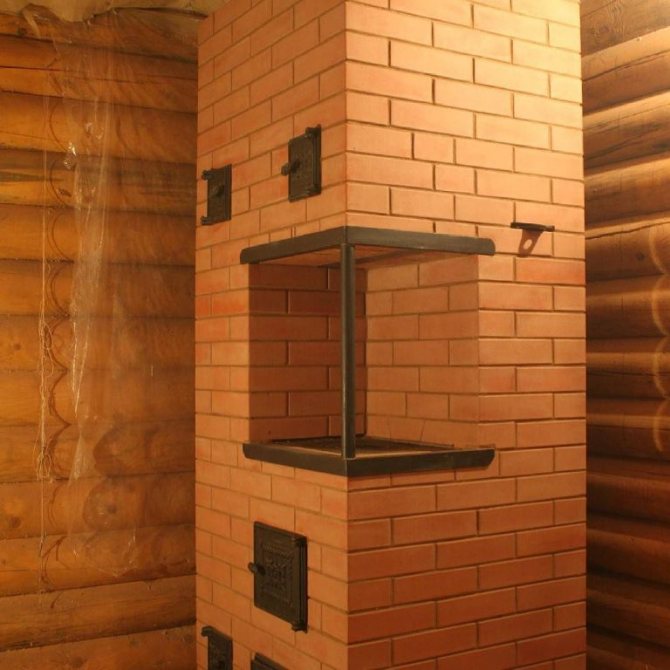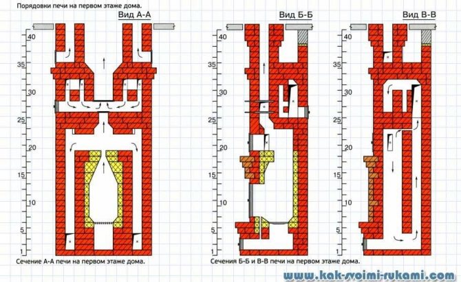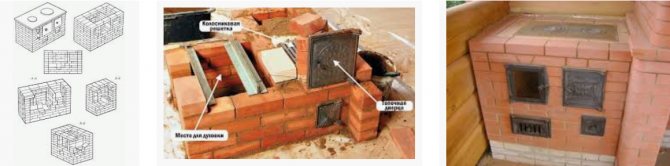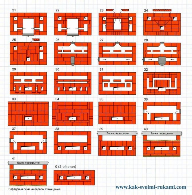 Avec une telle maçonnerie, le fonctionnement de l'équipement est grandement simplifié. Dans le bâtiment, des briques rouges et en argile réfractaire sont utilisées en quantités à peu près égales.