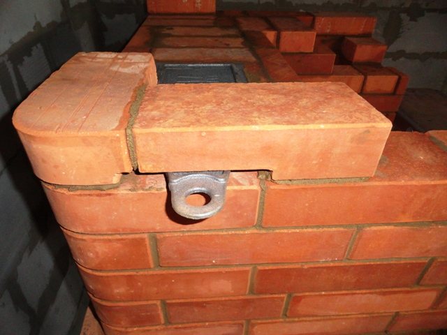 À 17-18 rangs, toutes les briques devaient être broyées en hauteur - il était nécessaire d'entrer dans le cadre de la dalle. Le chevauchement de la première cloche s'est terminé par une chambre à pain. Le dôme de la chambre à pain a dû être remplacé par un couvercle plat, car la hauteur de la porte s'est avérée plus élevée que prévu.
