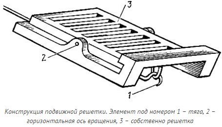 - Grille mobile. La fonction principale dans ce cas est de limiter la taille de l'écart entre les grilles par le déplacement de la partie mobile dans le plan horizontal. Ceci est très pratique pour le fonctionnement automatique des poêles à combustion longue.