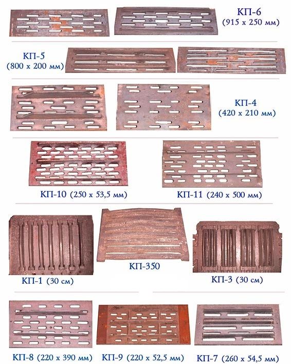Les grilles de four sont des tiges métalliques (le plus souvent en fonte) de différentes longueurs, ce qui vous permet de les choisir en fonction des dimensions de la chambre de combustion. La grille en fonte pour le four a une section transversale en forme de coin ou trapézoïdale.