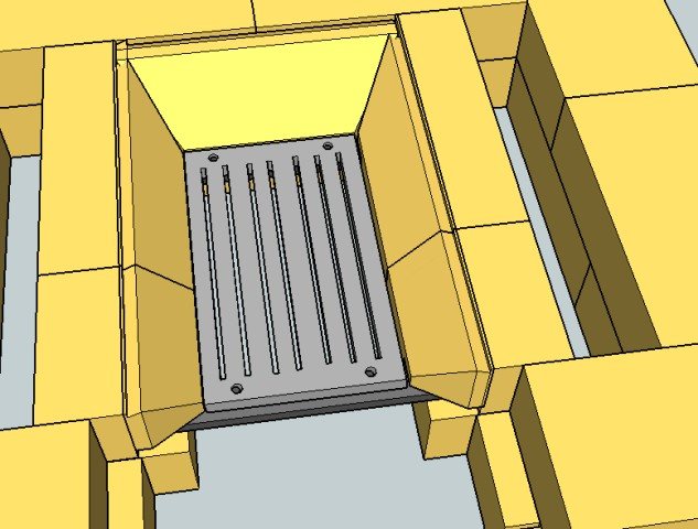 Ces éléments sont posés dans le treillis avec le côté large vers le haut. Cela facilite l'accès de l'air par le bas au foyer de combustion, et les cendres à travers les espaces entre les grilles tombent librement dans le ventilateur.