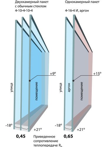 Une chambre à 1 chambre de 24 mm de large peut parfaitement surmonter les effets négatifs des changements brusques de température et même fournir une isolation phonique décente. Pour cela, des revêtements spéciaux économes en énergie sont utilisés et l'espace entre eux est rempli d'argon.