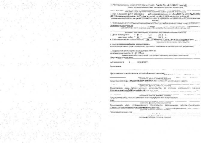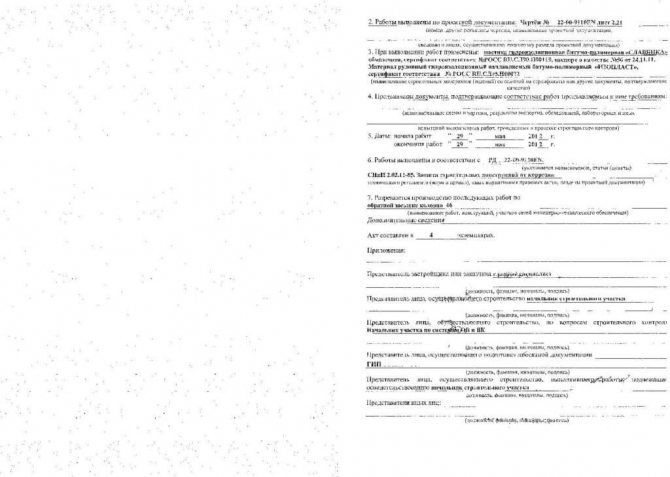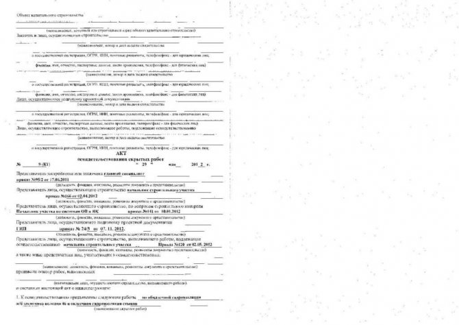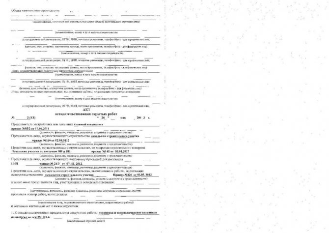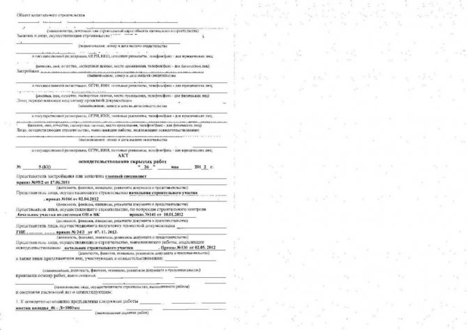 Le document certifie que cette étape de construction ou de réparation est terminée avec une qualité élevée, vous pouvez donc passer à l'étape suivante. La prospection des ouvrages cachés est effectuée par une commission habilitée, qui rédige et signe l'acte. Points importants dans la préparation du papier: la nécessité d'indiquer les coordonnées des parties impliquées (le client, l'entreprise qui réalise la construction, le bureau d'études), l'attribution de l'acte du numéro et la date de rédaction des informations sur les représentants de chaque partie, la présentation d'informations détaillées sur les travaux cachés (nom, conformité avec la documentation du projet, quels matériaux ont été utilisés lors de la construction), les dates de début et de fin des travaux sont indiquées, en quelle quantité l'acte a été tiré vers le haut, quels documents y sont joints, quelles notes y a-t-il… L'acte est signé par toutes les personnes autorisées (nom, initiales et signature).