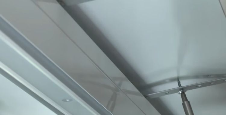 - Fermé. Le panneau est équipé d'un bord supérieur incurvé uniquement. La moitié inférieure a des rainures qui l'enclenchent dans la cassette inférieure. La première rangée de cassettes de finition est fixée au rail de façade.