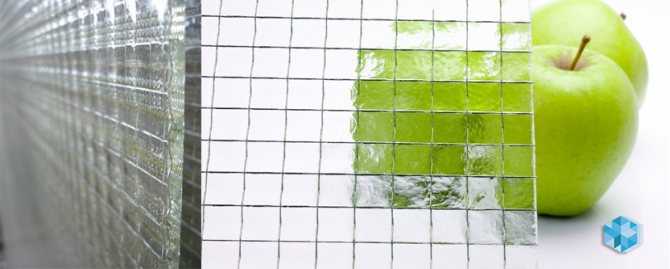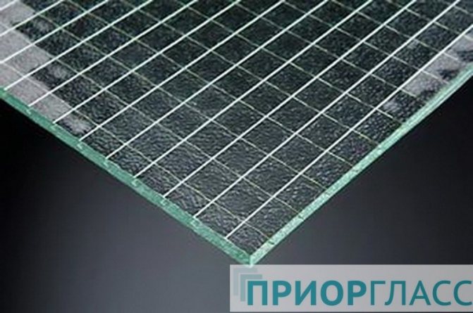 Il s'agit d'une feuille de verre, dans la masse de laquelle se trouve un fil métallique qui remplit la fonction de matériau de renforcement, sous l'influence de températures élevées et de haute pression, ce matériau conserve ses propriétés physiques. Après destruction, le verre renforcé ne s'effrite pas, ce qui ne cause aucun dommage aux résidents ou aux travailleurs de la pièce. Ceci est réalisé grâce au treillis métallique présent dans la masse de la feuille, du fait que le maillage du treillis est très petit, les fragments ne s'effritent pas et ne nuisent pas à une personne.