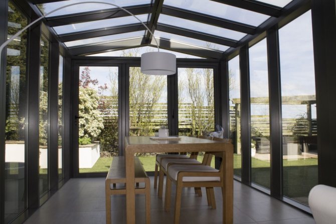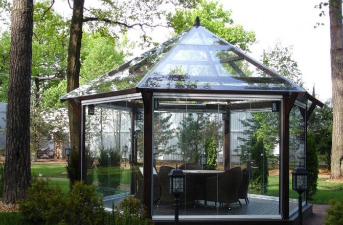 Gazebos vitrés pour chalets d'été: caractéristiques