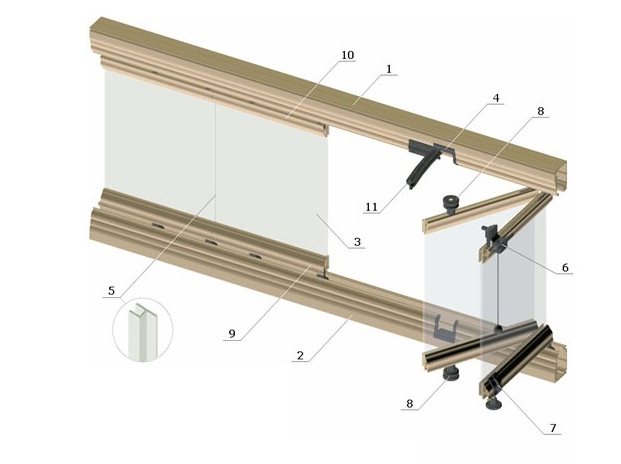 Il est assemblé à partir d'un groupe d'éléments dans lesquels des trous pour les fixations sont prévus à l'avance. De plus, les raccords sont responsables de ce dernier et du fonctionnement du profilé (ouverture-fermeture).