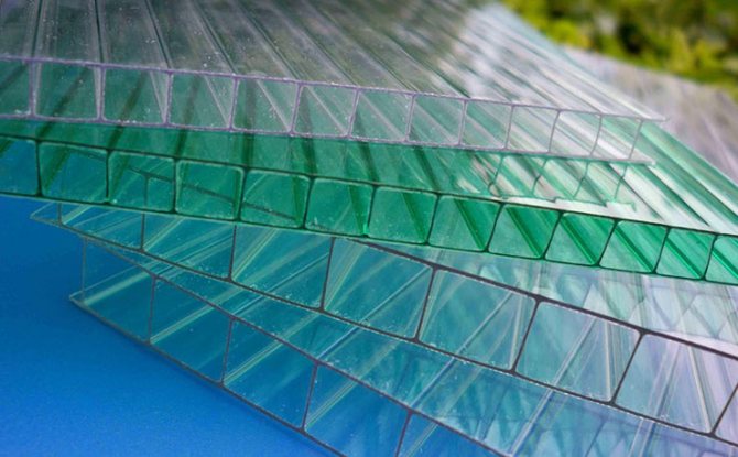 La structure en polycarbonate peut être monolithique ou en nid d'abeille. Ce dernier est souvent utilisé précisément à des fins décoratives, par exemple pour aménager une visière, un auvent et une décoration décorative d'une véranda.