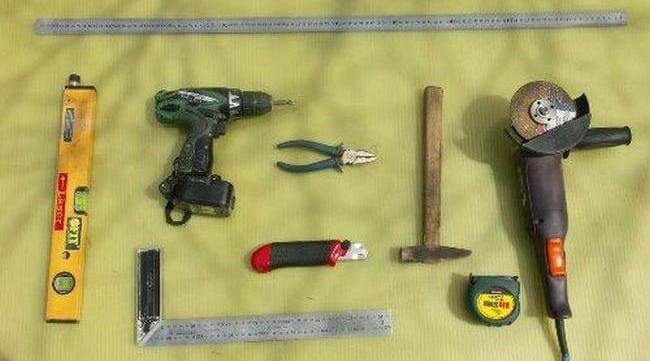 - perforateur; une pince, un tournevis, un couteau de bureau pour couper l'excès de mastic; niveau du bâtiment; scies à métaux; roulette; scie électrique pour couper la feuille de polycarbonate.