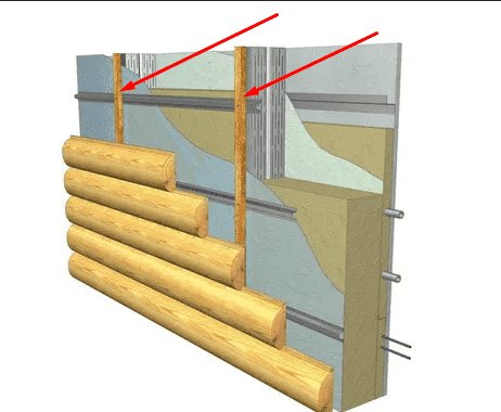 Il existe deux façons d'installer les lattes. Le premier est à deux couches, lorsqu'un système de bandes horizontales est installé pour la première fois, entre lesquelles des plaques d'isolation sont étroitement installées. Les lattes sont soigneusement alignées le long du plan, car une couche de lattes verticales y est installée, qui constituent le système de support des panneaux du blockhaus et, en parallèle, fournissent un espace de ventilation. Cette technologie est bonne dans les cas où une épaisse couche d'isolation est nécessaire.