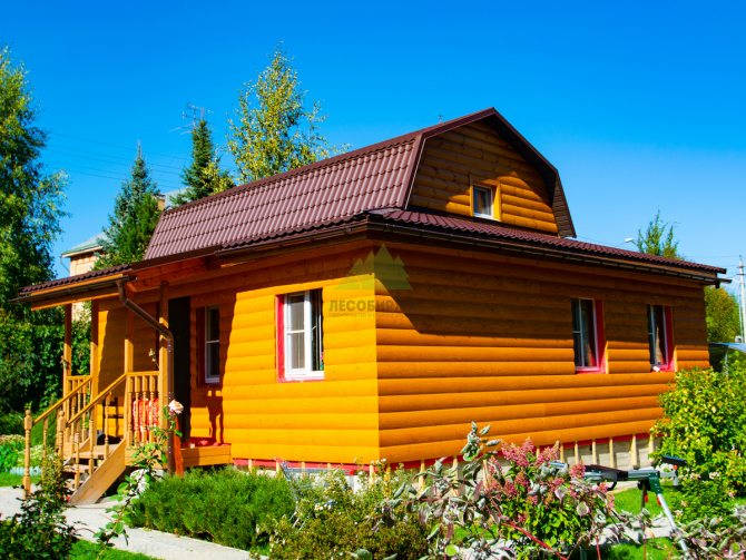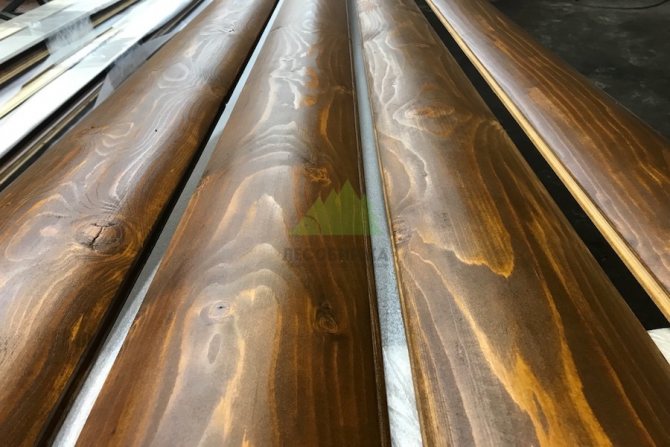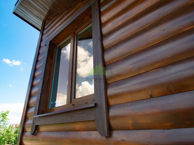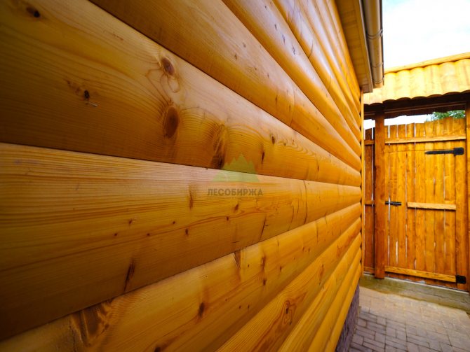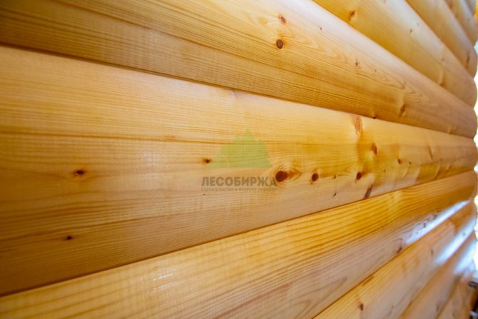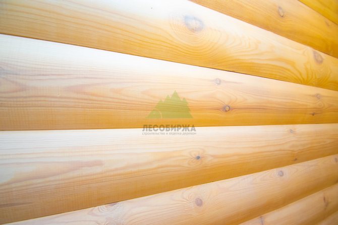 Contrairement à la doublure en bois ordinaire, le bloc de maison a une face avant arrondie. Sur le côté plat, il y a des rainures et des pointes spéciales (pour le montage), ainsi qu'une rainure longitudinale, conçues pour une meilleure ventilation et réduire les contraintes internes de la planche. Il est considéré comme un matériau de meilleure qualité que la doublure et, par conséquent, plus cher.