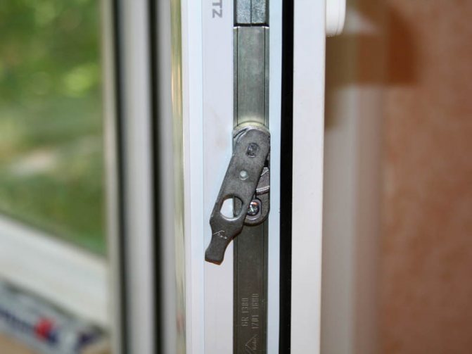 Le système se compose d'une poignée métallique et de vannes d'arrêt. Il y a une serrure à l'extérieur. La serrure est un bloqueur d'inclinaison de fenêtre en plastique. Un tel limiteur est considéré comme le plus fiable (en particulier chez les enfants). L'ouverture de la fenêtre en plastique ne peut se faire qu'avec une clé.