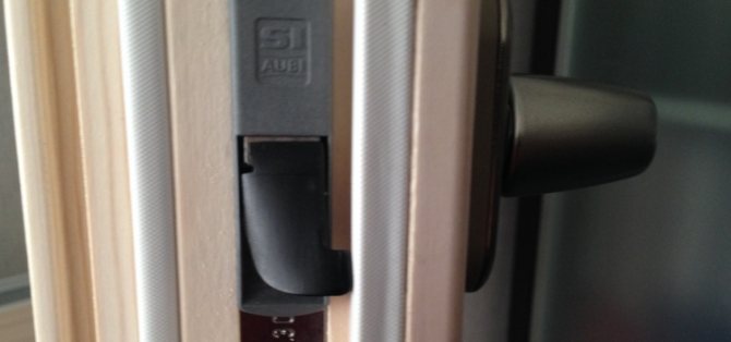 - Trouvez le bloqueur. Il est situé à l'extrémité de l'ouvrant, à côté de la poignée et est une barre située à un angle de 30 ° par rapport au bus central.