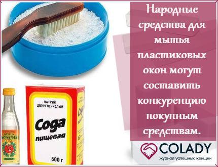 Vous pouvez nettoyer les cadres en PVC à la maison, ainsi que les appuis de fenêtre, à l'aide de remèdes populaires. Jetons un coup d'œil à deux des recettes les plus populaires: