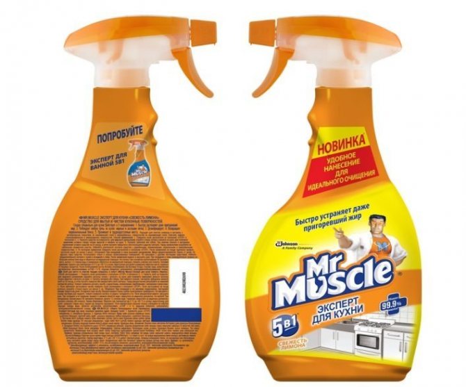 - Monsieur Muscle. Un bon vieux remède qui n'a jamais échoué dans des situations comme celle-ci. Il lave n'importe quelle surface, que ce soit en verre, en bois ou en plastique. La seule recommandation lors du nettoyage des fenêtres en plastique est d'avoir un masque ou un respirateur pour la protection respiratoire.