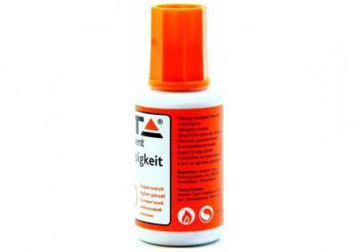 - Fluides correcteurs. De telles compositions chimiques sont vendues dans de petits flacons et sont appliquées à la surface d'une feuille de papier avec une tache à l'aide d'un pinceau, d'un applicateur ou d'une éponge spéciale. Ces produits sont assez pratiques et faciles à utiliser, mais ils sont assez rares dans les fournitures de bureau modernes, car les fabricants accordent une grande importance à la production de produits plus pratiques.