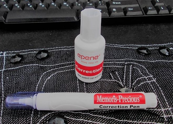 Le liquide correcteur est nettoyé du tissu à l'aide d'un solvant spécialement formulé pour éliminer ces taches. On le trouve en papeterie. Compte tenu de la possibilité constante d'obtenir la composition sur les vêtements, même dans des conditions de précision maximale, il est conseillé de l'acheter avec un correcteur.