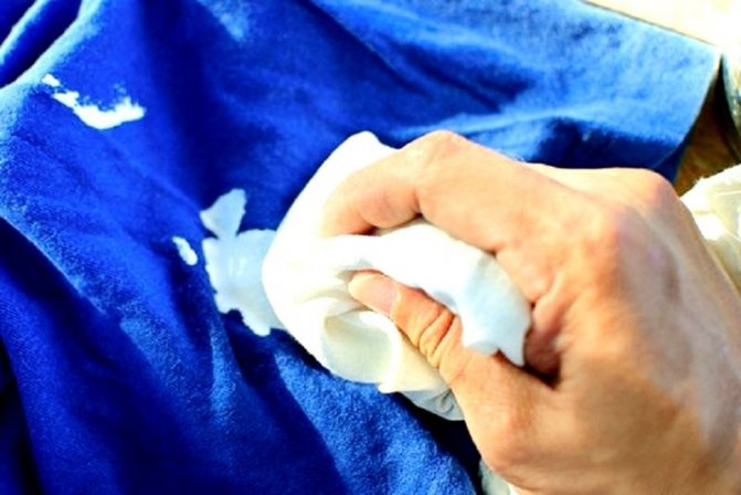 Ensuite, épongez doucement la saleté et nettoyez le trait, en vous déplaçant des bords vers le centre. N'appuyez pas trop fort pour qu'il ne soit pas absorbé plus fortement. Nous lavons les vêtements traités dans la machine à laver au mode de lavage maximum. Vous pouvez ajouter un agent pour lutter contre divers contaminants.