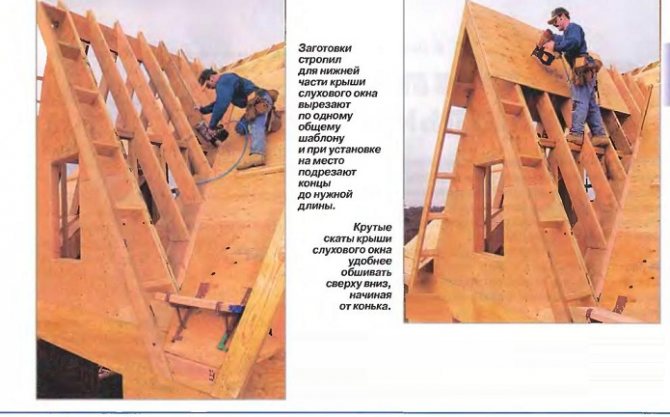 - couper, si nécessaire, un ou deux pieds de chevron, et les chevrons extrêmes qui encadrent les contours de la fenêtre du grenier sont doublés;