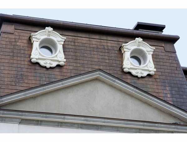 - Fronton. Ils sont installés à la fin, au mur pignon de la maison et sont pour le moment la conception la plus courante et la plus simple. Il est utilisé pour les toits à pignon et est un lien entre une fenêtre ordinaire et un mur à pignon. Sa forme géométrique peut être très différente - du rectangulaire au rond et aux multiples facettes.