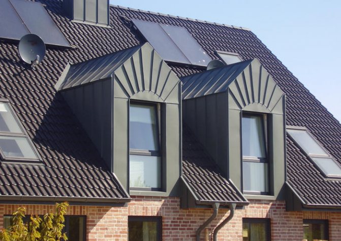 La complexité de l'installation d'une trappe dépend directement du matériau de toiture sélectionné. Les pignons de la fenêtre (latéraux et avant) peuvent être finis avec le même revêtement que la façade du bâtiment, mais la règle principale ici est qu'ils n'ont pas beaucoup de poids. Mais le toit de la fenêtre est une continuation de toute la structure, donc le même toit est généralement posé ici, il peut s'agir de tuiles, d'onduline, etc.