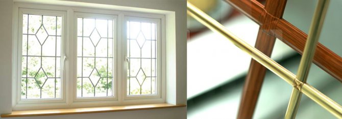 De fausses fixations sont installées sur la partie extérieure de l'unité de verre, moins souvent dans la cavité intérieure. Ils segmentent visuellement la fenêtre. Ce décor convient aux maisons de campagne, aux chalets d'été, aux chalets, aux vérandas.