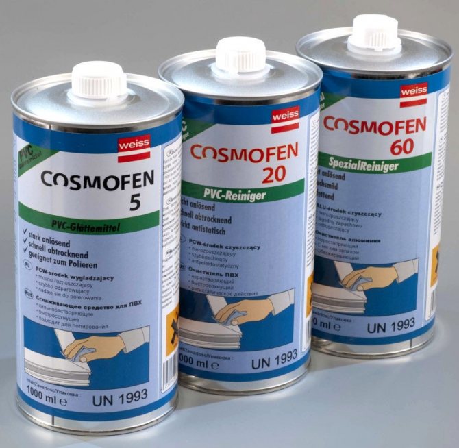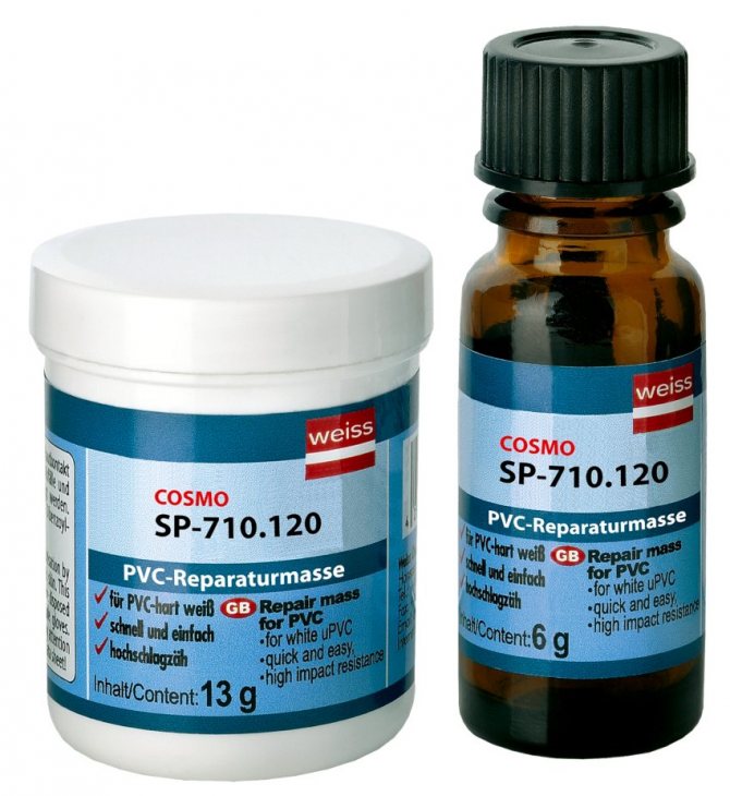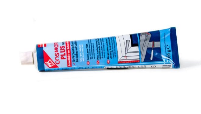 - Colle Cosmofen pour produits PVC. Le produit est similaire en performance aux mastics populaires.Il est utilisé lors du traitement des interstices des blocs de fenêtres. Le mélange durci appliqué ne se décolore pas au soleil, n'exfolie pas, ne change pas de couleur pendant le fonctionnement. Convient pour réparer les raccords, les pièces en plastique, les appareils de plomberie, les raccords, les tuyaux, etc.
