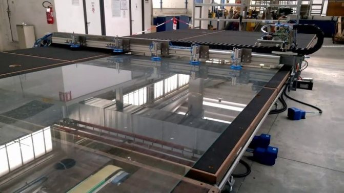 Le verre dans les usines modernes est coupé sur des lignes automatiques. Tout d'abord, des rayures d'une profondeur de 1 à 1,5 mm sont appliquées sur le verre avec un rouleau diamanté, puis elles sont brisées le long de ces marques. Les feuilles de verre standard mesurent 3210x2250mm ou 6100x3210mm. Il existe des programmes spéciaux pour couper le verre, ils vous permettent de minimiser les coupes, ce qui réduit le coût du produit final