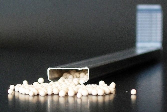 Un séchoir à air est versé dans le cadre. Il y a de petits trous sur une surface du cadre et les granules déshydratants à travers eux absorbent les molécules d'eau contenues dans l'air. Si le déshumidificateur ne fait pas face à la tâche, de la condensation se formera sur les surfaces intérieures du verre - une telle unité de verre est considérée comme défectueuse.