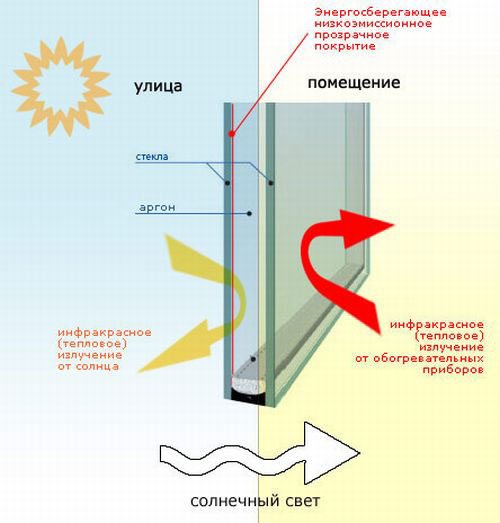 - i-verre. Les matériaux filmogènes sont appliqués sur le plan du verre par le procédé de dépôt sous vide, qui créent une couche protectrice «douce» à faible émission, qui contribue à la réflexion de la vague de chaleur depuis la surface de la fenêtre. L'indice d'émetteur de surface (E) illustre la tendance du verre à «rebondir» la chaleur dans le bâtiment. Le E du verre standard est de 0,83 et celui du verre à économie d'énergie est de 0,004. Autrement dit, plus cet indicateur est élevé, plus l'énergie thermique passe par les fenêtres. Les vitrages isolants écoénergétiques aideront à réduire les «fuites» thermiques jusqu'à 90%.