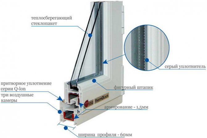 - Cadre. Chaque fenêtre a sans faute un cadre de support en profilé PVC, renforcé de métal.
