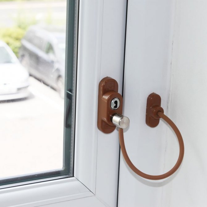 L'appareil le plus simple installé sur les fenêtres euro. Une installation à faire soi-même est disponible. Comme son nom l'indique pour le verrouillage, un câble relie deux éléments métalliques. Une extrémité du câble est attachée à l'autre et verrouillée avec une clé. Les fabricants recommandent de se renseigner sur la commande et le lieu d'installation de l'objet. Il est conseillé de ne pas bloquer la vitre pour perdre l'une des fonctions du vitrage.