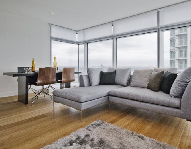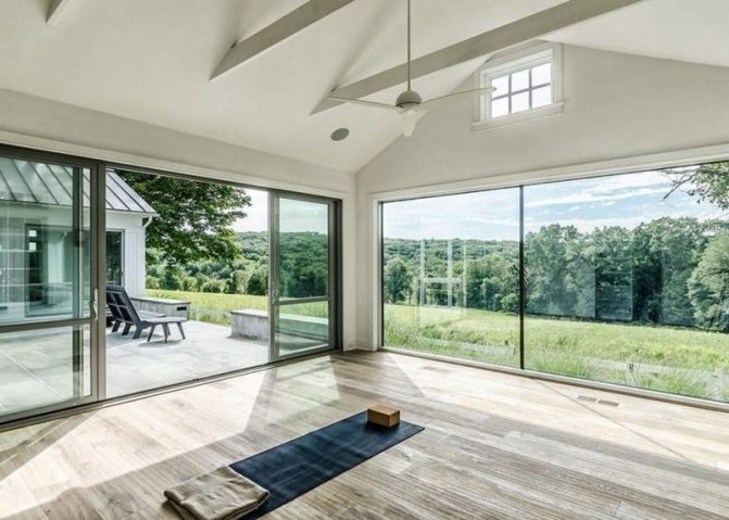 Photo : les fenêtres panoramiques du sol au plafond sont devenues une nouvelle tendance en architecture. Les fenêtres deviennent l'image la plus belle et la plus dynamique de la maison et soulignent le statut élevé de la propriété. Des verres spéciaux permettent de rendre ces fenêtres aussi chaudes que des murs.Pour les vitrages panoramiques, seuls des matériaux de haute qualité sont utilisés: verre coûteux de 6 mm d'épaisseur, profil large avec renfort puissant. Ce type de vitrage haut de gamme, comme le précédent, ne peut pas être bon marché - le prix du mètre carré des fenêtres panoramiques «aveugles» sera de 25 000 roubles / m², glissant de 50 000 roubles / m². sans montage.