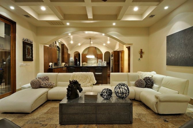 Si vous concevez un nouveau bâtiment ou souhaitez changer radicalement la conception des pièces dans une structure existante, il serait bien d'inclure une arche dans le salon, même si votre apparence générale doit être moderne. De nombreuses maisons modernes n'ont pas de marques d'arc, mais il est relativement facile de convertir une porte ordinaire en une porte cintrée. Si vous souhaitez faire cela, réfléchissez à la façon dont vous pouvez appliquer un chevauchement arqué pour obtenir l'effet le plus spectaculaire.