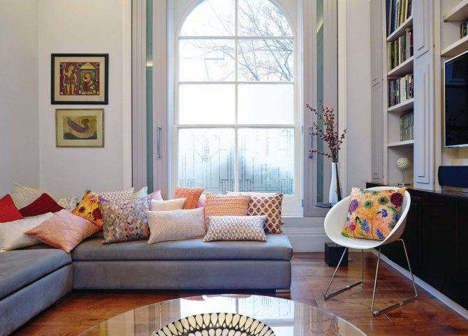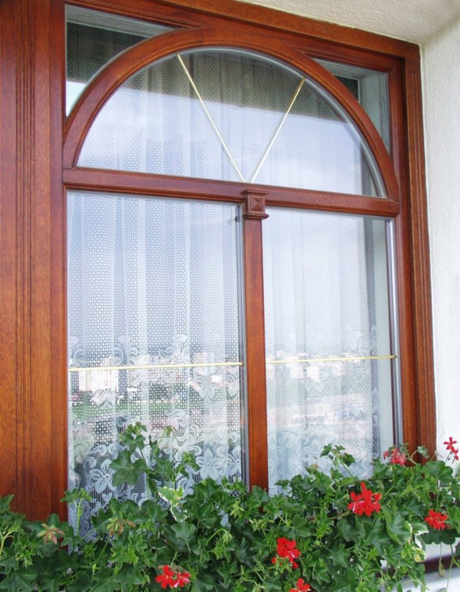 Très souvent, les structures cintrées sont équipées de plusieurs châssis dont le nombre dépend de la taille des fenêtres. Il est préférable de ne pas placer plus de deux châssis sur une petite feuille de fenêtre, car cela réduira la transmission de la lumière et la composante géométrique de la fenêtre sera violée. Veuillez noter que les ouvertures avec plusieurs volets peuvent réduire visuellement l'espace.